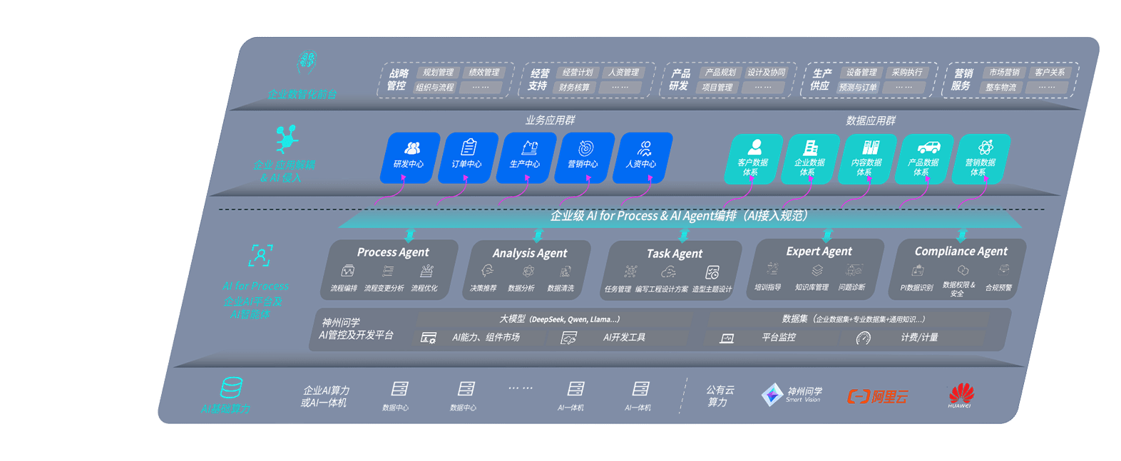 端到端的一站式AI工作空间深度融合了从企业战略规划到日常经营的全流程业务板块,,,,定向解决车企内部领域多、、、、部门多、、链条长、、、场景碎片化等难题,,支持车企快速构建以AI为核心的生产力写作体系,,,实现任务执行与AI能力的无缝集成与交互